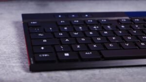 El K100 se puede cambiar entre BlueTooth y la tecnología inalámbrica Slipstream de Corsair con solo tocar un botón, lo que lo hace versátil. Se pueden conectar hasta tres dispositivos al mismo tiempo.
